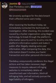 Затем администратор Discord-канала компании сообщил, что инцидент с утечкой данных произошел в прошлом, утечка является старой, данные пользователей не пострадали, а команда безопасности PandaBuy оперативно отреагировала на проблему.
